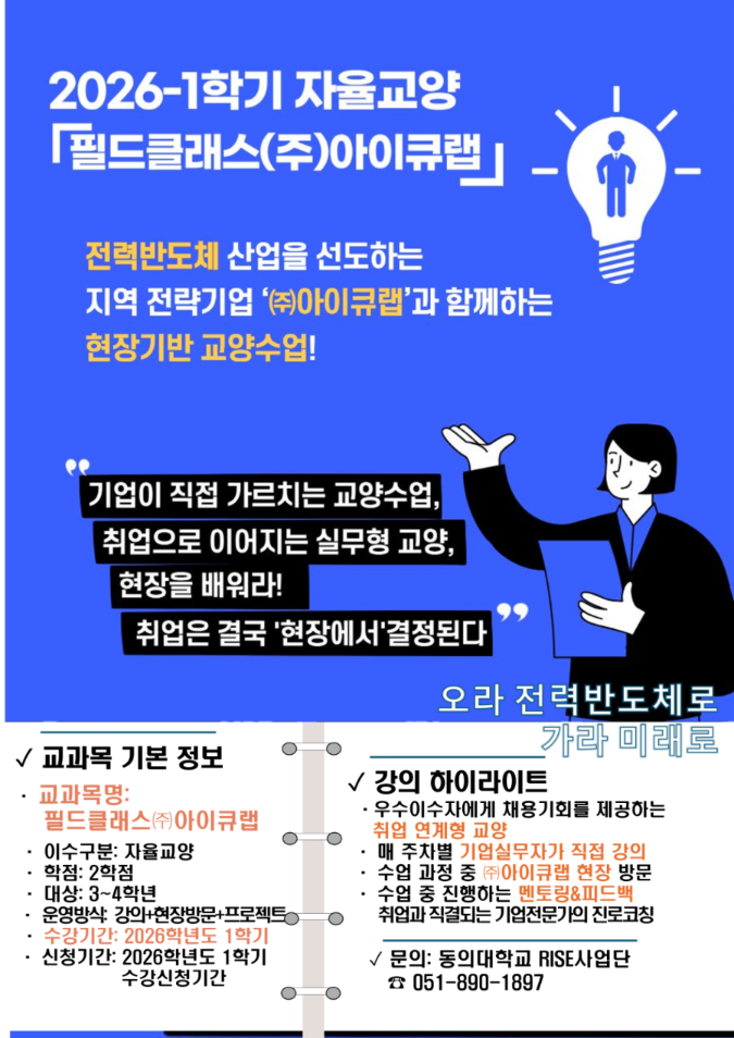 [RISE] 2026학년도 1학기 ⌈필드클래스(주)아이큐랩⌋ 자율교양 교과목 개설 및 수강생 모집(2026-1학기 수강신청기간) 안내