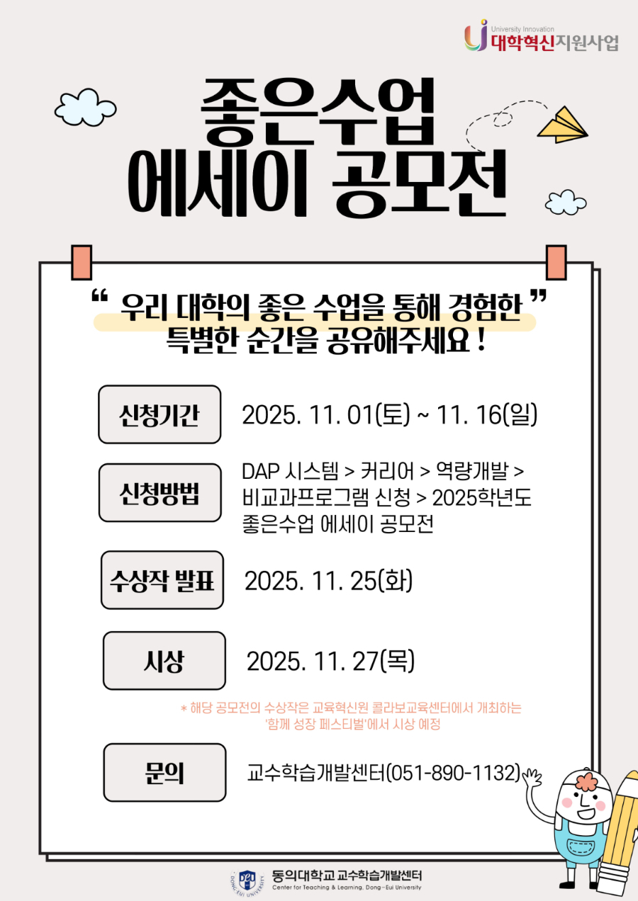 [교수학습개발센터] 2025학년도 좋은 수업 에세이 공모전 신청 안내