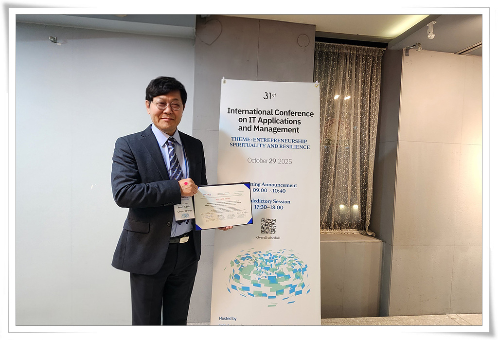 동의대 인공지능그랜드ICT연구센터 정석찬 센터장과 강영진 연구교수, 김기환 연구교수가 지난 10월 26일~30일까지 경상국립대학교에서 열린 ‘2025년 제31회 ITAM(31st International Conference on IT Applications and Management) 국제학술대회’에서 우수 논문상을 수상했다.